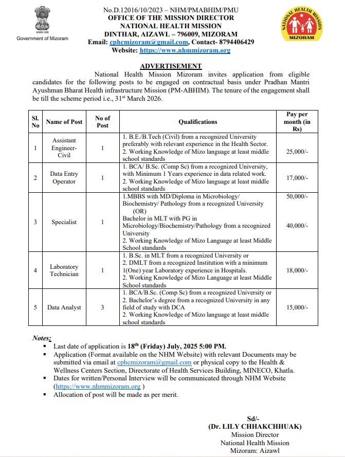 Advertisement for recruitment of various post under PM-ABHIM Advertisement and Application Form Download - PM-ABHIM